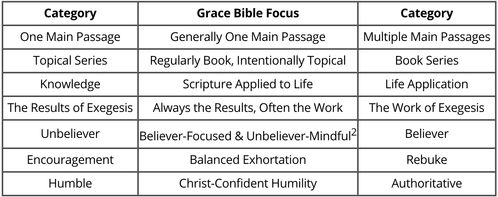 The goal of this article is to help us clarify what kind of preaching we expect to hear in the pulpit each week at Grace Bible Church. At Grace Bible, we aim to be both gracious and biblical. This leads us to drawing hard lines on matters of sermon substance while recognizing a both/and continuum on matters of sermon style.