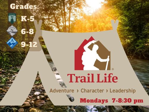 Trail Life USA is a Church-Based, Christ-Centered, Boy-Focused mentoring and discipleship journey that speaks to the heart of a boy. Established on timeless values derived from the Bible and set in the context of outdoor adventure, boys from Kindergarten through 12th grade are engaged in a Troop setting by male mentors where they are challenged to grow in character, understand their purpose, serve their community, and develop practical leadership skills to carry out the mission for which they were created.